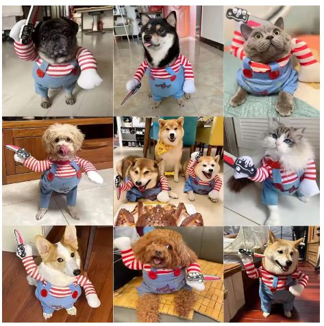 Hai mai visto un killer cosΓ¬... coccoloso? π Il nostro costume di Chucky per cane e GattiΒ Γ¨ la perfetta combinazione tra brividi e risate! Con la sua maglietta a righe, la salopette rossa e le braccia finte (una con il coltello giocattolo, ovviamente!), il tuo cucciolo sembrerΓ uscito direttamente da un film horror... ma con un tocco irresistibilmente tenero! π§Έπ